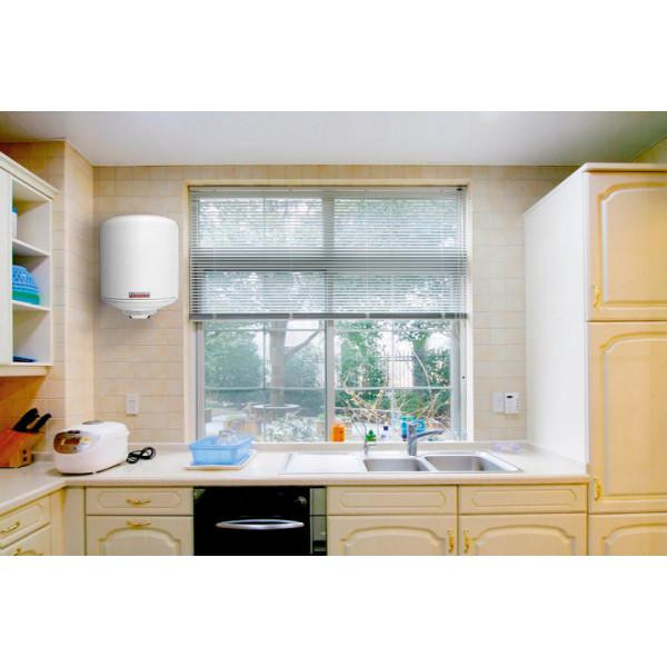 З накопичувальним водонагрівачем Atlantic ROUND Eco VMR 50 (941290) вода завжди буде комфортної температури, незалежно від пори року і погодних умов. Модель виконана у вигляді циліндричного теплоізоляційного бака на 50 л, що забезпечує більший об'єм гарячої води. Причому температура води на виході може досягати цілих 70 градусів. За якісний і швидкий нагрів відповідає надійний ТЕН мокрого типу, потужність якого становить 1200 Вт, якого більш ніж достатньо, щоб нагріти 50 л води всього за 1 годину 56 хвилин. Якісні теплоізоляційні матеріали несуть відповідальність за тривале збереження заданої температури, дозволяючи економно витрачати електроенергію. Вертикальна установка ідеально підходить для вузьких, тісних просторів в невеликих квартирах. Надійне антикорозійне покриття внутрішнього баку зі склокераміки захищає робочі елементи від накипу, корозії і продовжує термін служби пристрою. Передбачений в конструкції магнієвий анод також сприяє цьому. Перевагою моделі є можливість подачі води відразу в кілька точок водозабору, при цьому повноцінна робота пристрою не залежить від тиску. Захист від перегріву автоматично відключить живлення, коли нагрівальний елемент досягне критичної температури. Захист від надлишкового тиску дозволить запобігти можливій небезпеці, своєчасно відкривши запобіжний клапан. Для налаштування оптимального нагріву Atlantic ROUND Eco VMR 50 (941290) оснащений простим і інтуїтивно зрозумілим механічним регулятором.