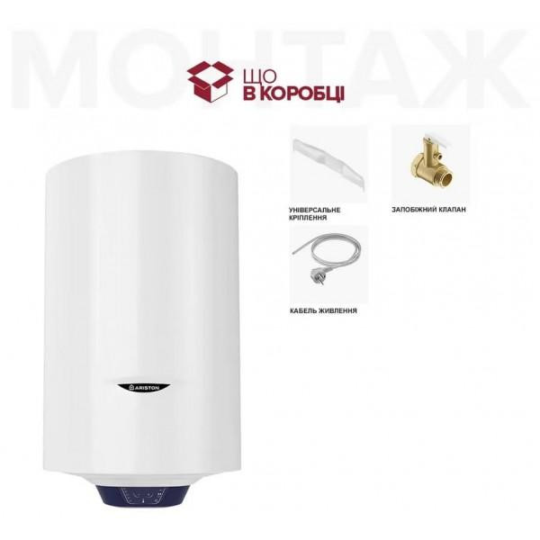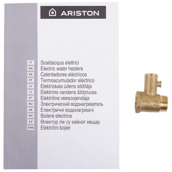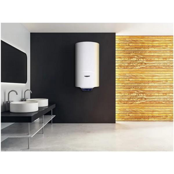 Високотехнологічний електричний водонагрівач Ariston BLU1 ECO 100V 1,8K PL DRY HE (3201458) має циліндричну форму і призначений для вертикального встановлення. Завдяки компактній формі він не займає багато місця, що актуально для приміщень з невеликою площею. Внутрішнє покриття бака виготовлено з AG+, такий матеріал не впливає на смак і властивості води, а також є надійним. Він оснащений відразу двома нагрівачами для води сухого типу. Потужність роботи кожного становить 0,9 кВт. При цьому споживаної потужності в 1800 Вт цілком достатньо щоб за 2 год 46 хв нагріти 100 л води до 45°С. Максимальне нагрівання становить 80 градусів. Робочий тиск пристрою становить 8 бар. Ariston BLU1 ECO 100V 1,8K PL DRY HE (3201458) оснащений функцією прискореного нагрівання, ECO EVO, піктограмою, яка показує готовність першого душа, а збільшений магнієвий анод запобігає утворенню корозії і накипу. Якісна поліуретанова термоізоляція набагато довше зберігає бажану температуру, а також підвищує енергоефективність, що дозволяє власникам пристрою економити на електроенергії. Для управління температурою, вибору оптимального режиму і потужності на лицьовій стороні передбачено електронне управління і світловий індикатор.