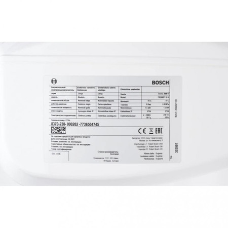 Водонагрівач Bosch Tronic 2000T mini ES 015-5 1500W BO M1R-KNWVT (7736502059) – це компактна електрична модель накопичувального типу, яка буде доречна для місць, де потрібний невеликий об'єм гарячої води. Bosch Tronic 2000T mini ES 015-5 1500W BO M1R-KNWVT (7736502059) виконаний у вигляді прямокутної конструкції, розміром 408х368х246 мм та вагою 8,3 кг. Він призначений для настінного монтажу у вертикальному положенні з верхнім підведенням труб. Також варто звернути увагу на склокерамічне покриття внутрішньої поверхні 15 л бака, наявність мокрого ТЕНу, потужністю 1,5 кВт, та магнієвого анода, зрозумілого простого механічного керування в комбінації зі світловою індикацією та запобіжного клапана. До того ж у процесі експлуатації Bosch Tronic 2000T mini ES 015-5 1500W BO M1R-KNWVT (7736502059) Ви зможете не тільки відрегулювати температурний режим до 70 градусів, але й скористатися літнім та антибактеріальним режимами, а також режимом захисту від замерзання.