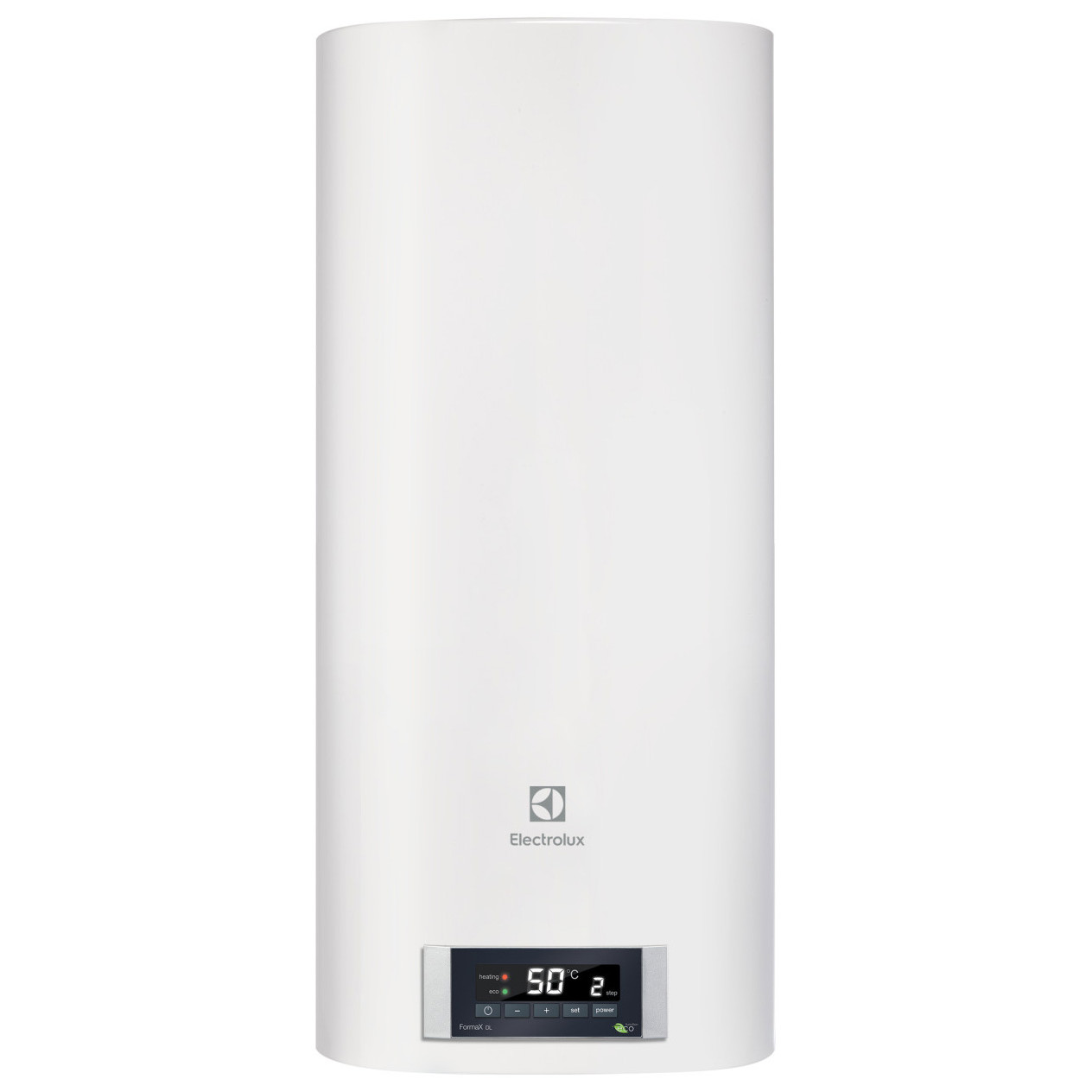 Електричний бойлер Electrolux EWH 50 Formax DL ідеально підходить для приміщень з обмеженим простором. Він встановлюється строго на стіну в вертикальному положенні, оснащений рядом передових технологій. Серед останніх особливо важливо виділити Multy memory. Вона надає користувачам можливість установки до 3 індивідуальних температур нагрівання, які значно економлять час і зберігаються навіть при вимкненні живлення. Додаткові особливості Electrolux EWH 50 Formax DL представлені 3 режимами потужності (800/1200/2000 Вт), економічним режимом, при якому вода нагрівається до позначки 55°С, граничною простотою в експлуатації. На лицьовій частині приладу є зручна електронна панель з кнопками ввімкнення системи і регулювання температури.