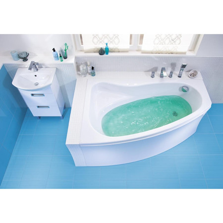 Ванна Cersanit Sicilia 140x100 L має цікаве і сучасне асиметричне виконання з витонченими і плавними вигинами, завдяки чому дозволяє максимально комфортно в ній розташуватися, що зробить сам процес прийняття водних процедур заспокійливим і комфортним. Варто звернути увагу, що вбудована конструкція встановлюється виключно в лівому кутку. Для виготовлення даної моделі виробник вибрав високоякісний акрил, який відрізняється тривалим терміном експлуатації. До того ж, він не вимагає особливого догляду, досить просто сполоснути водою або вимити миючим засобом, що не мають абразивних речовин в складі. Також передбачений перелив, що робить її експлуатацію більш безпечною. Витончена конструкція ванни, при розмірі 1400х1000х450 мм, досить глибока, що робить її ще більш комфортною протягом усього терміну експлуатації. Додатково Cersanit Sicilia 140x100 L має зручну поличку, де ви зможете розставити шампуні, гелі та інші речі.