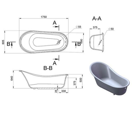 ванна, ніжки для монтажу, сифон