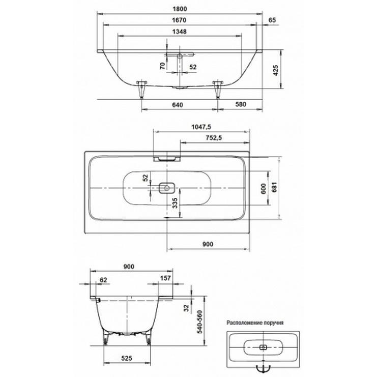 Ванна прямокутна сталева з емальованим покриттям 3,5 мм.