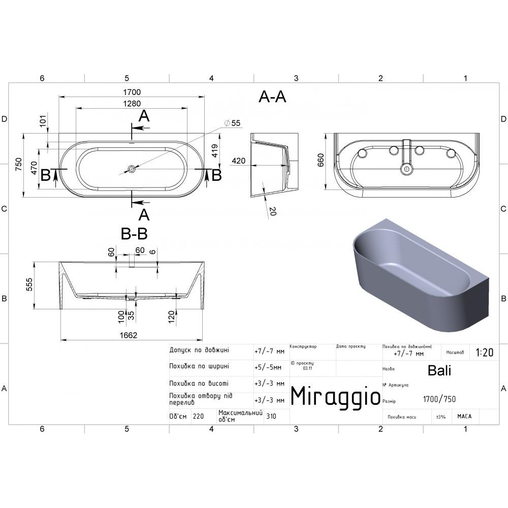Об'єм, л: