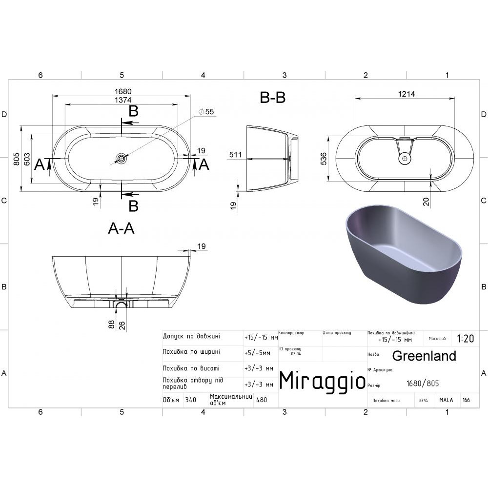 Об'єм, л: